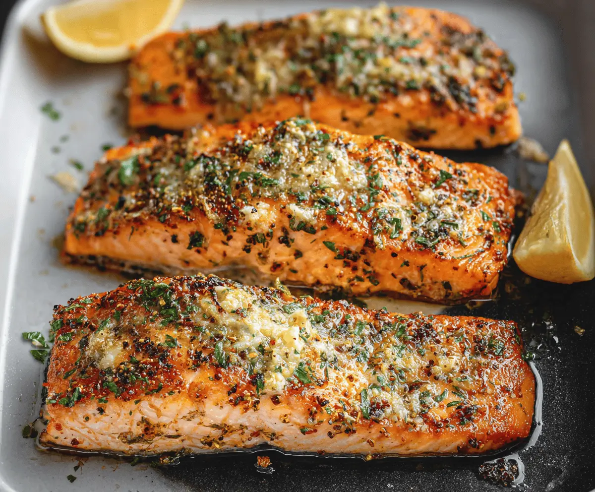 Transfer the salmon to a serving plate. If you’d like, you can garnish with a sprinkle of fresh parsley and serve lemon wedges on the side for a delicious squeeze just before eating.
