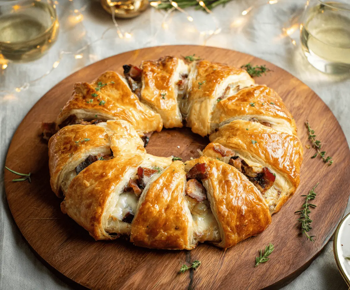 This Bacon Brie Crescent Wreath is perfect for gatherings, adding a savory, cheesy twist to your snack table. Enjoy every bite! 🎉