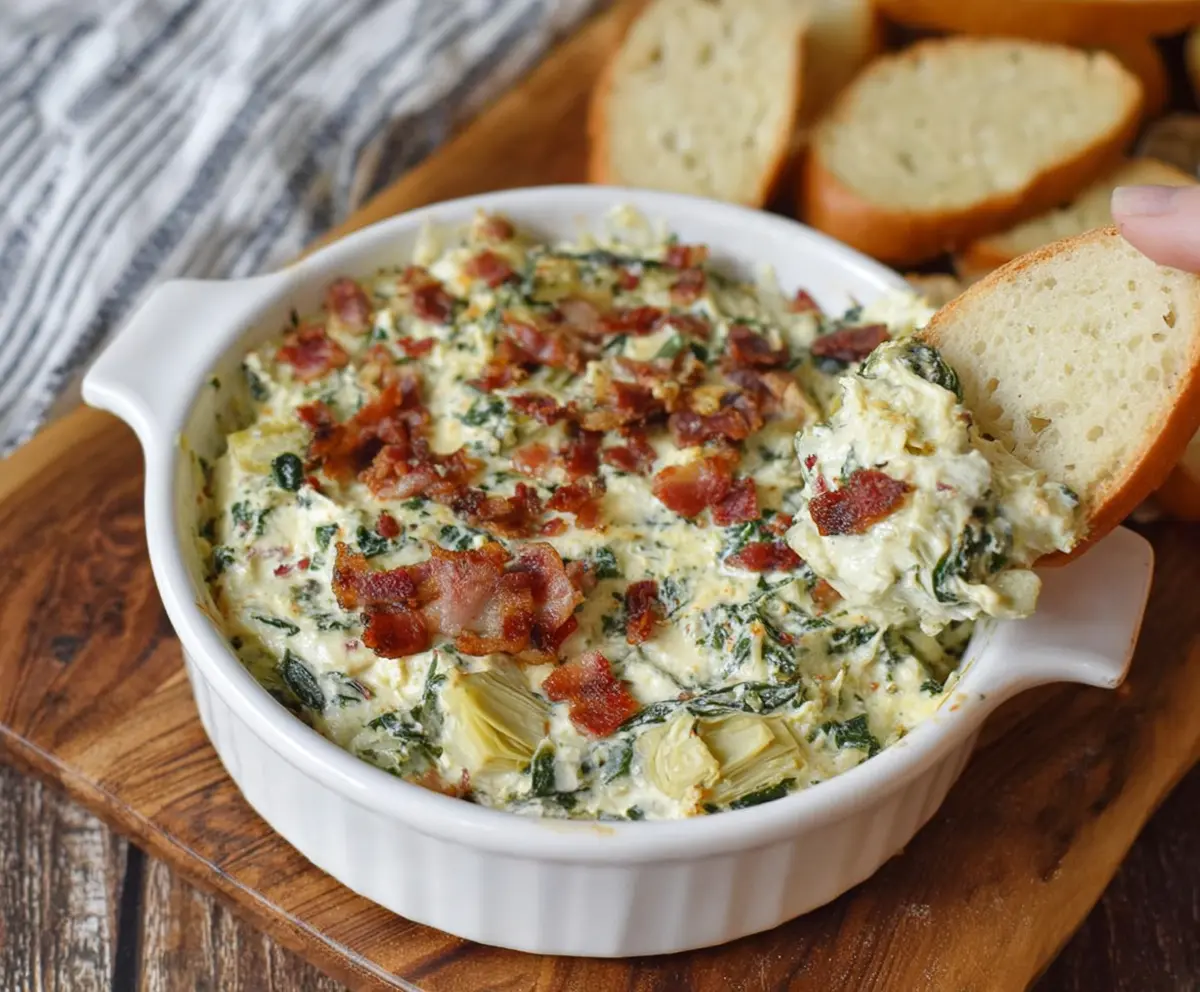 Enjoy your warm, creamy bacon spinach artichoke dip!