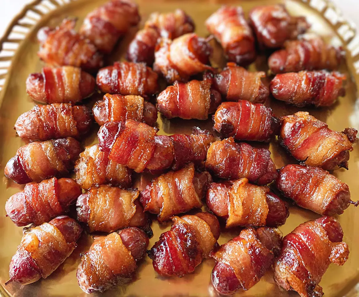These Bacon-Wrapped Little Smokies are the perfect party snack! Juicy sausages are wrapped in crispy bacon, making them super tasty and fun to eat.