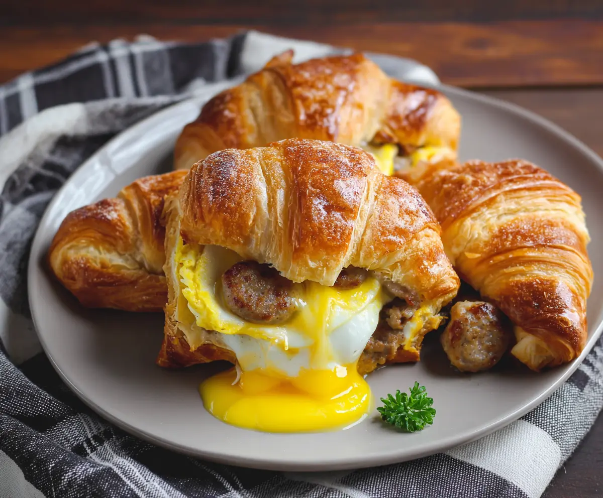 These baked sausage, egg, and cheese croissants are perfect for brunch or a delightful breakfast treat. Enjoy every bite!