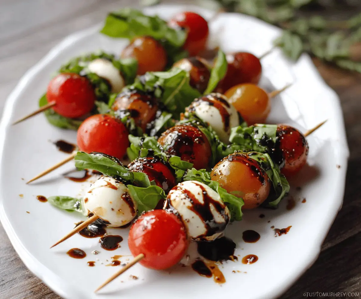 These Balsamic Glazed Caprese Skewers are a fun and fresh treat! With juicy cherry tomatoes, creamy mozzarella, and fragrant basil, they’re easy to make and perfect for any gathering.