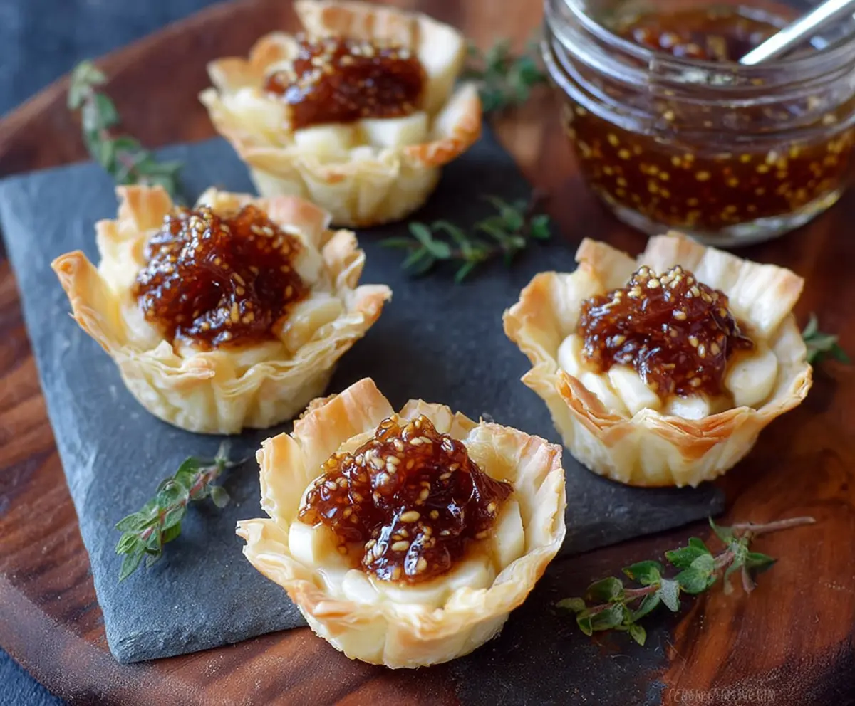These Brie and Fig Phyllo Cups are a tasty treat! Crispy phyllo pastry holds creamy brie and sweet figs, making them perfect for any gathering or just a cozy night in.