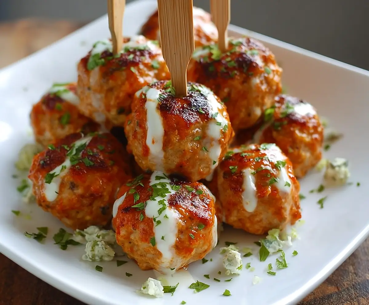 Enjoy your spicy, tangy, and delicious Buffalo Chicken Meatballs!