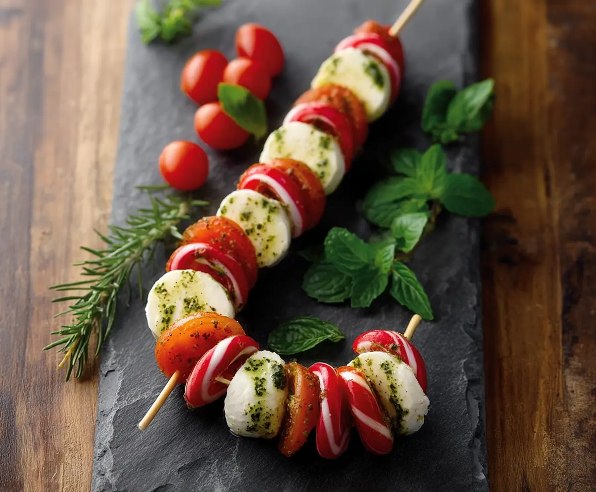 Fresh Mozzarella: You can use bocconcini or ciliegine for bite-sized pieces. For a vegan option, try marinated tofu or vegan cheese that mimics mozzarella.