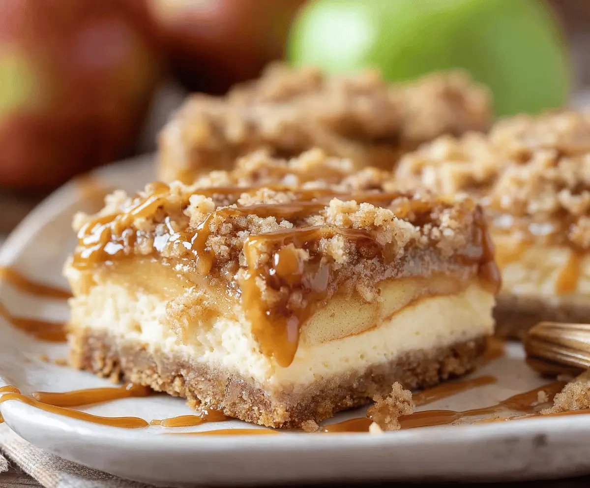 These Caramel Apple Cheesecake Bars are a sweet treat that combine creamy cheesecake and tart apples, all drizzled with delicious caramel. Perfect for a cozy dessert!