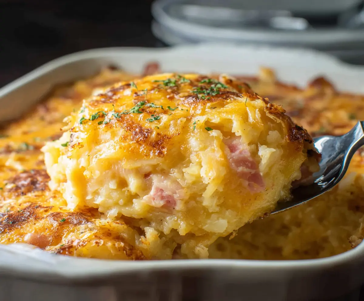 This Cheesy Ham Hashbrown Casserole is the ultimate comfort food! It’s creamy, cheesy, and packed with flavorful ham, all mixed with crispy hashbrowns.