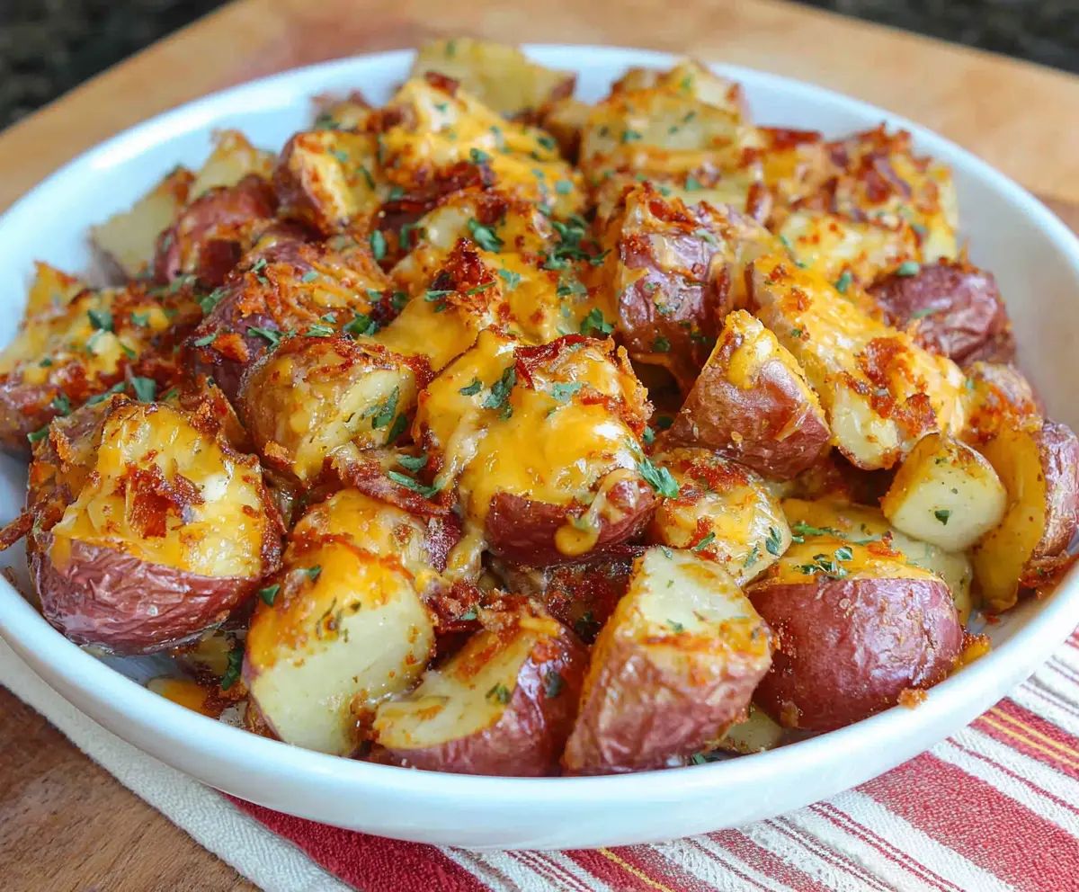 Take the cheesy red potatoes out of the oven, and if you like, garnish them with fresh parsley or chives for a pop of color. Serve them warm as a delightful side dish—enjoy your cheesy creation!