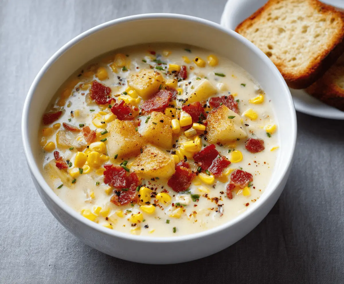 Serve hot with crusty bread on the side for a delightful dipping experience. Enjoy your warm, comforting bowl of creamy corn chowder!