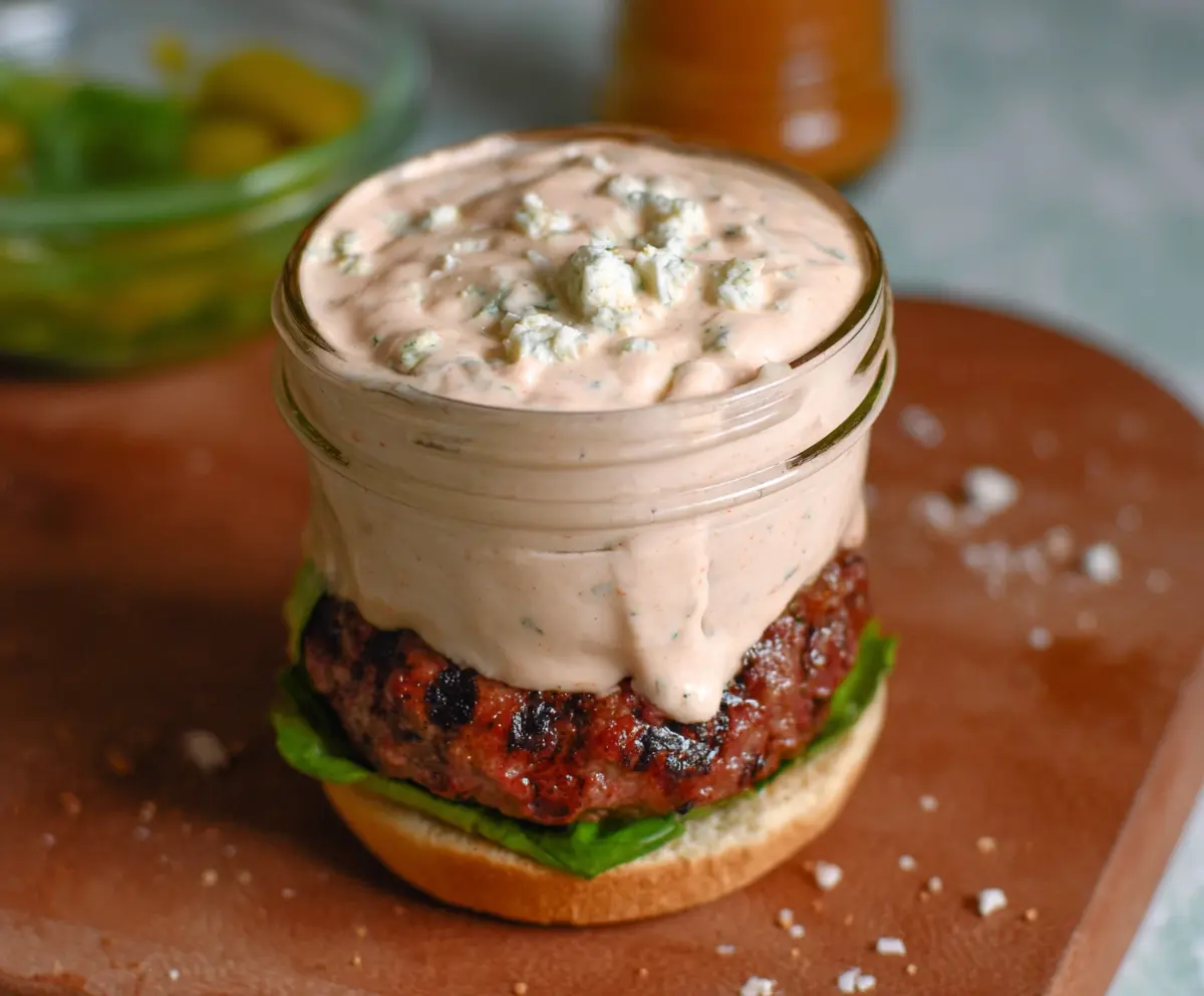 Once it’s all mixed and chilled, it’s ready to serve! Drizzle it generously over your burgers for a creamy boost, or use it as a fun dipping sauce for fries or veggies. Enjoy this flavorful twist that adds a fresh touch to your meals!