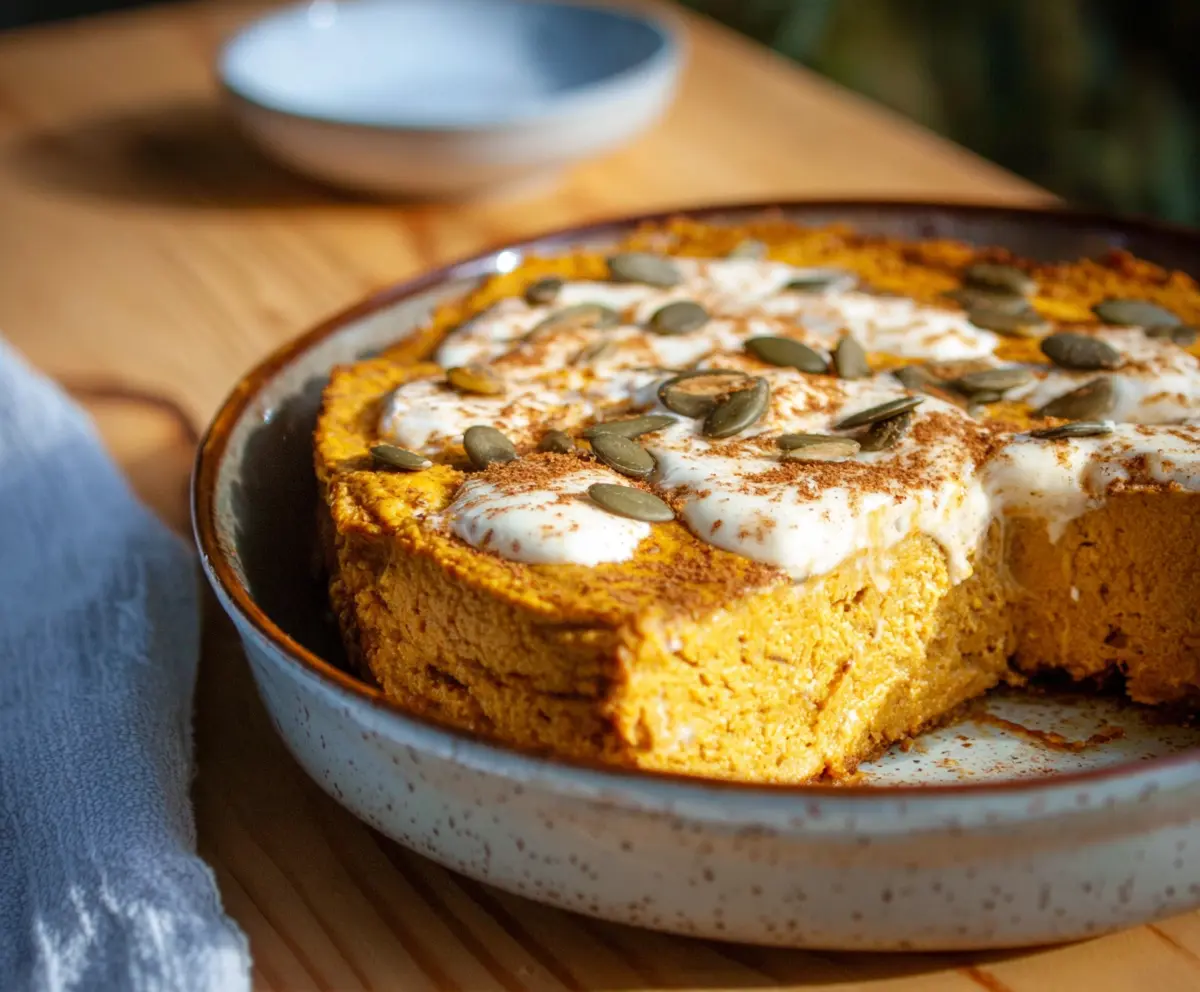 It’s like a pumpkin pie but with a fun twist. I love serving it warm, maybe with a sprinkle of cinnamon on top. Perfect for fall or anytime you want a little comfort! 🎃