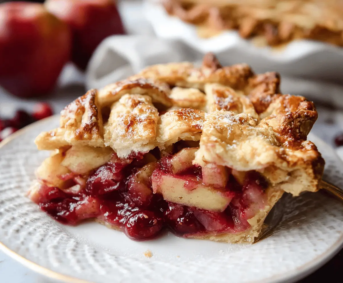 This Cranberry Apple Pie is a delicious mix of tart cranberries and sweet apples. It’s wrapped in a flaky crust, making each slice a treat for your taste buds!