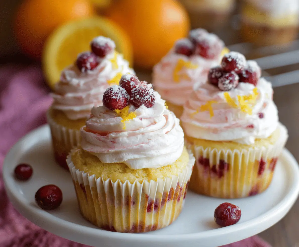 For a festive touch, top each cupcake with sugared cranberries and a thin slice or wedge of orange. They will look beautiful and inviting!