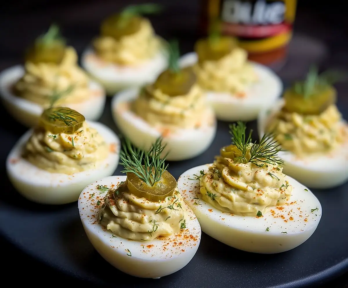 Dill Pickle Deviled Eggs are a fun twist on a classic snack! They combine creamy yolks with tangy dill pickles for a zesty flavor. Perfect for parties or just as a tasty treat!