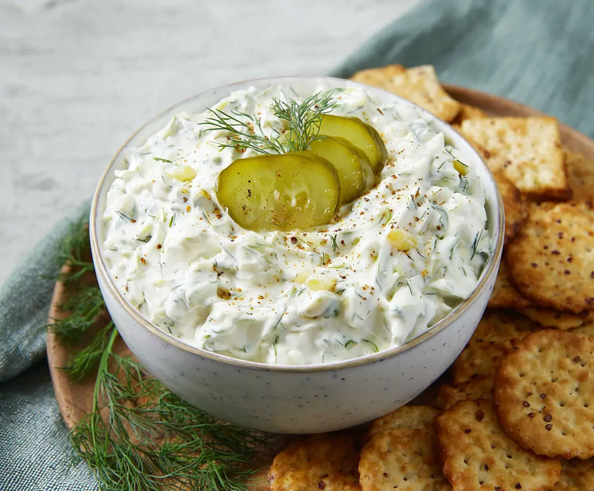 Serve your chilled dill pickle dip with an assortment of crackers, chips, or fresh vegetable sticks, and watch it disappear! It’s a sure crowd-pleaser.