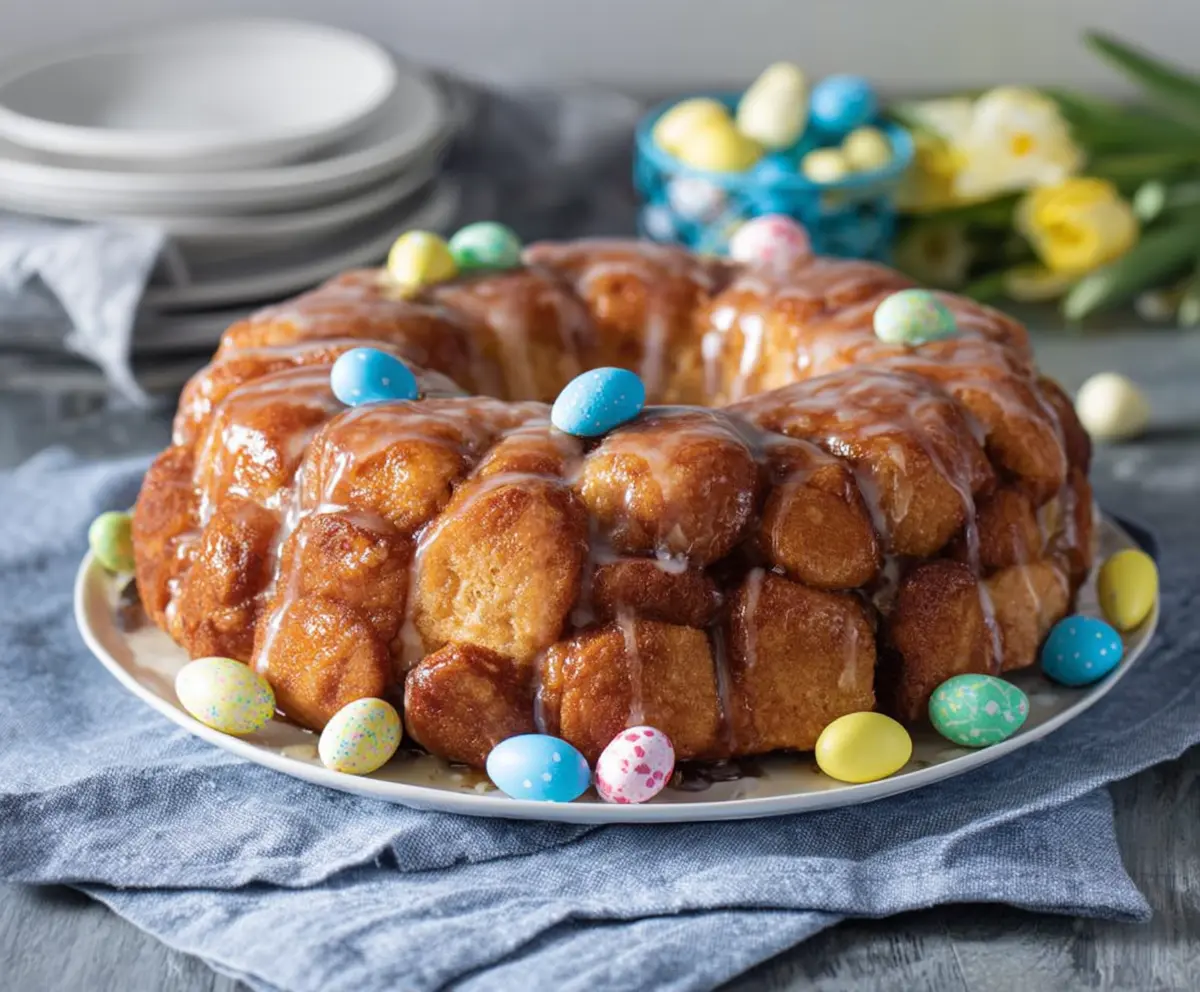Finally, serve the monkey bread warm. Encourage your guests to pull apart the pieces—it’s all about sharing in this sweet, gooey Easter brunch treat!
