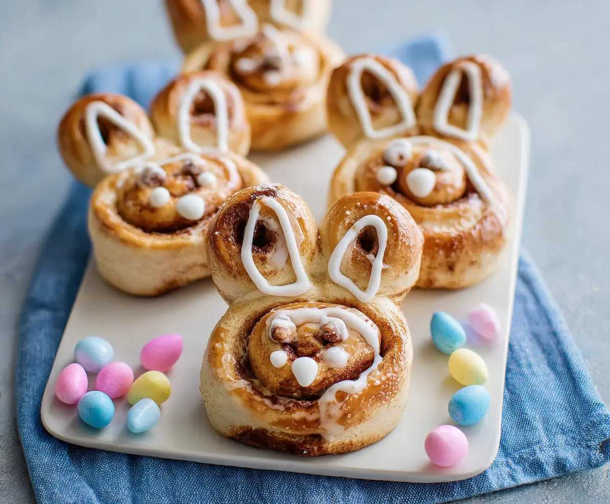 These Easter Bunny Cinnamon Rolls are a fun treat! Soft, fluffy rolls are swirled with sweet cinnamon, making them a perfect breakfast or snack for the holiday.