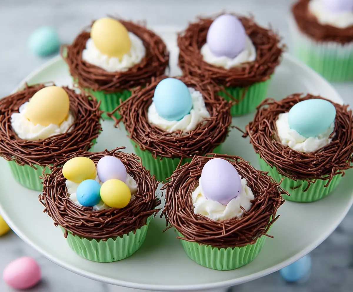 Your Easter Egg Nest Cupcakes are ready to impress! Arrange them on a serving platter for a beautiful presentation. If you’re not serving them immediately, keep the cupcakes refrigerated to maintain the structure of the chocolate nests. These delightful treats are sure to be a hit at your Easter celebrations!
