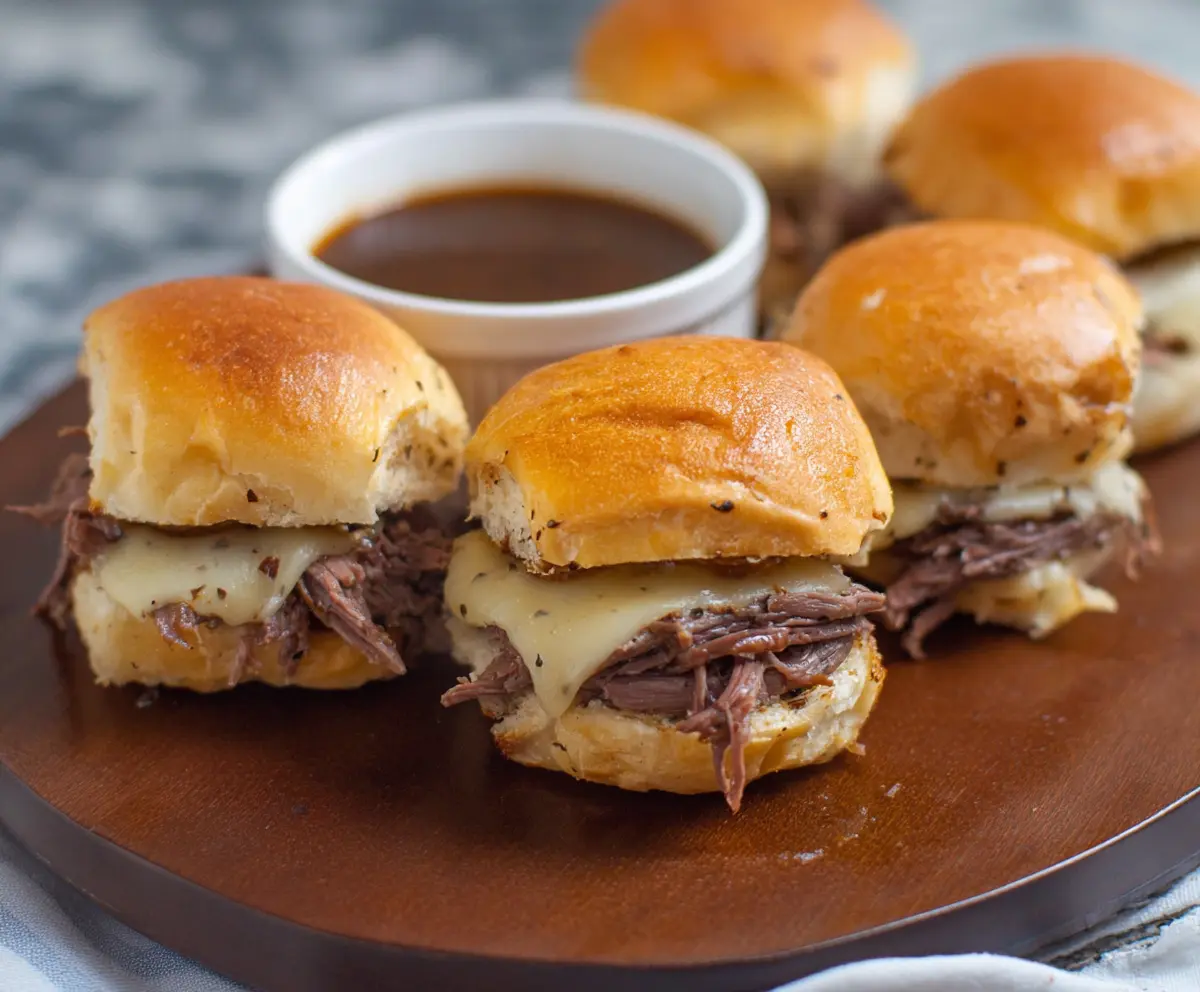 Enjoy these tender, juicy French Dip Sliders—ideal for casual meals or party snacks!