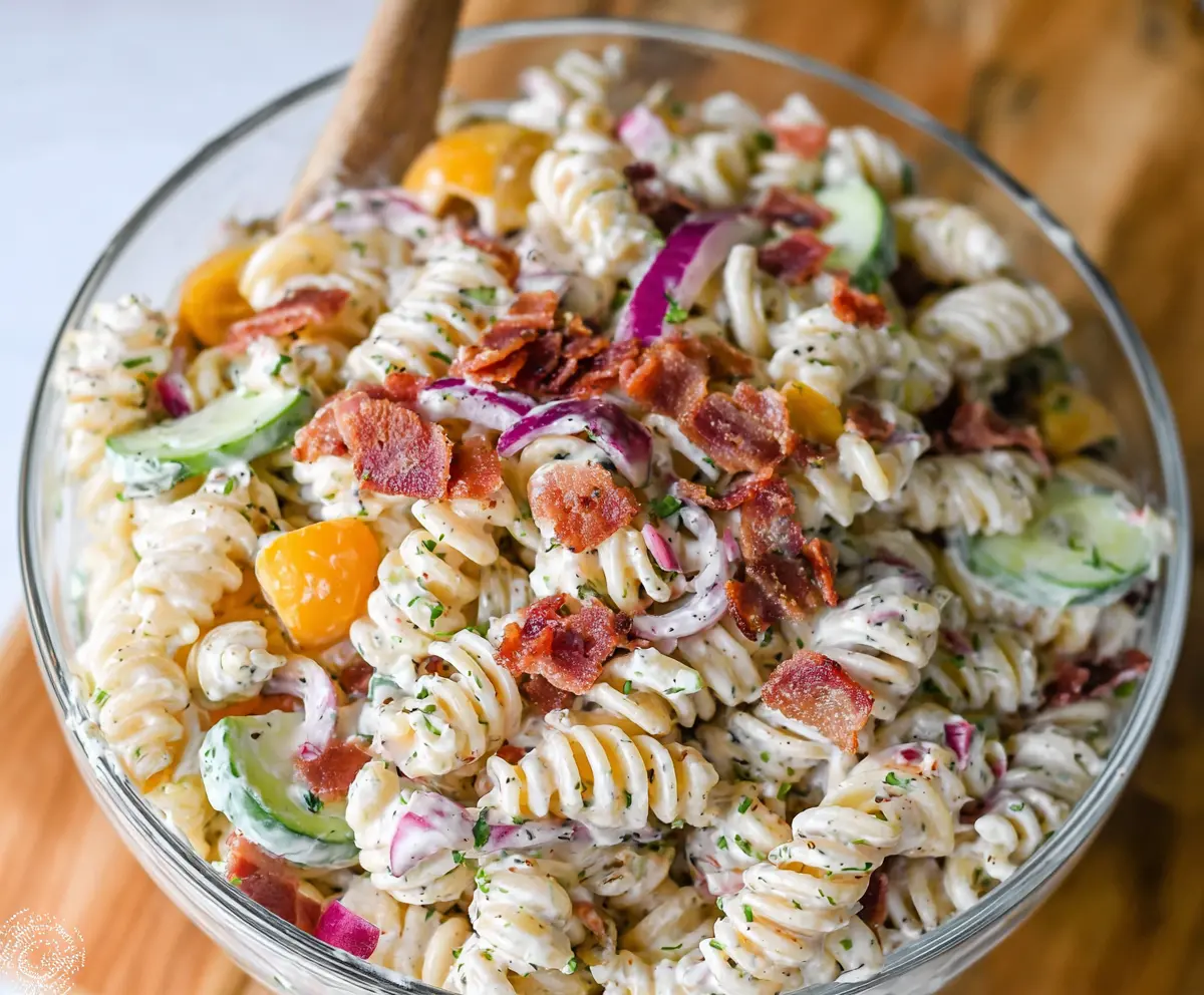 This Fresh Ranch Pasta Salad is a fun mix of pasta, crispy bacon, and colorful veggies, all tossed in a creamy ranch dressing. It’s perfect for picnics or a quick lunch!