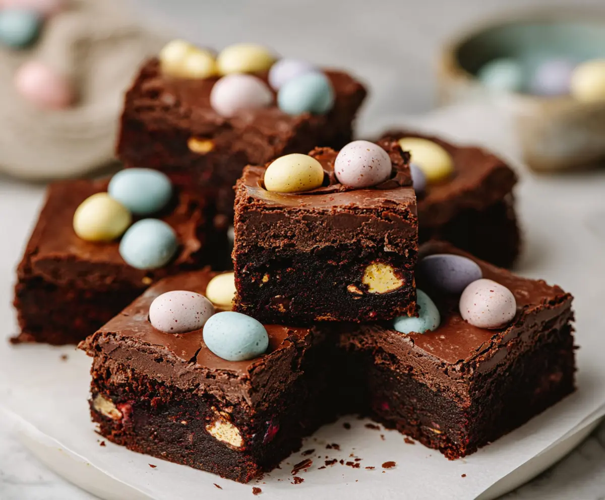 - 1 cup mini chocolate eggs (chopped for inside brownies)