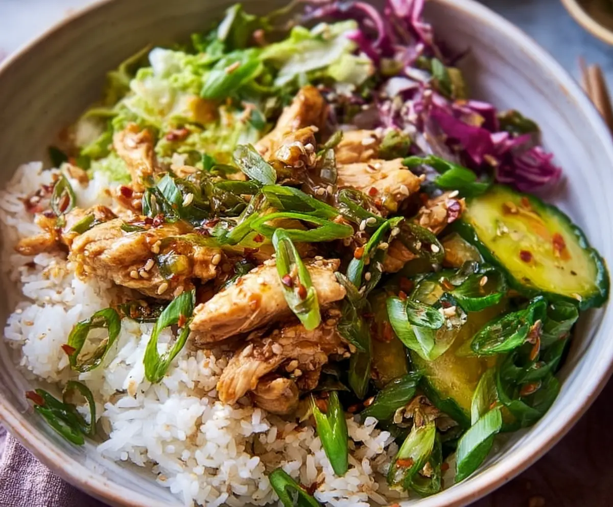 This Ginger Scallion Chicken Bowl is a tasty meal packed with flavor! It features tender chicken, fresh ginger, and zesty scallions that come together for a delightful dish.