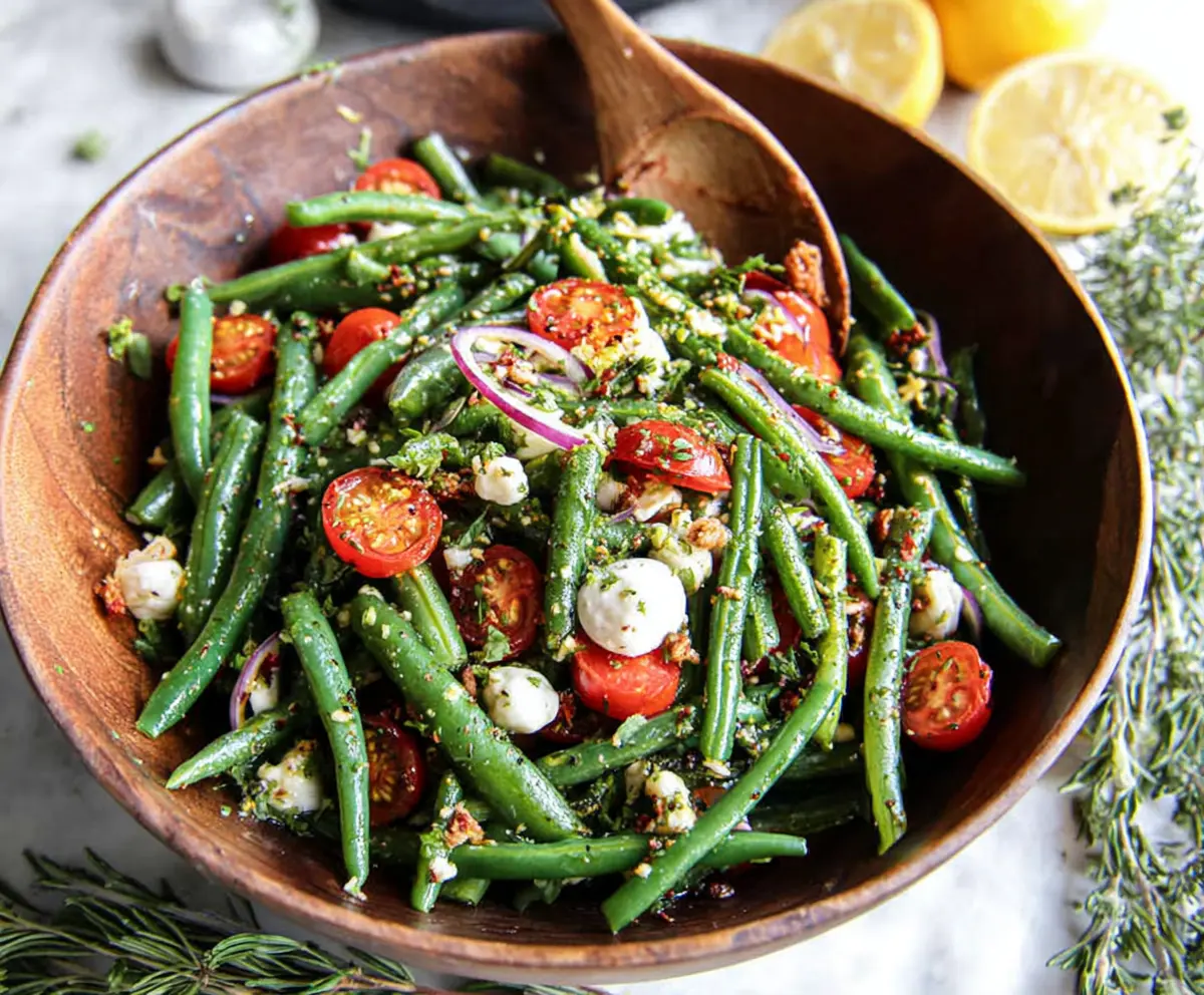 This fresh green bean salad is a colorful mix of crisp green beans, juicy cherry tomatoes, and crunchy nuts. It’s light, tasty, and perfect for any meal!