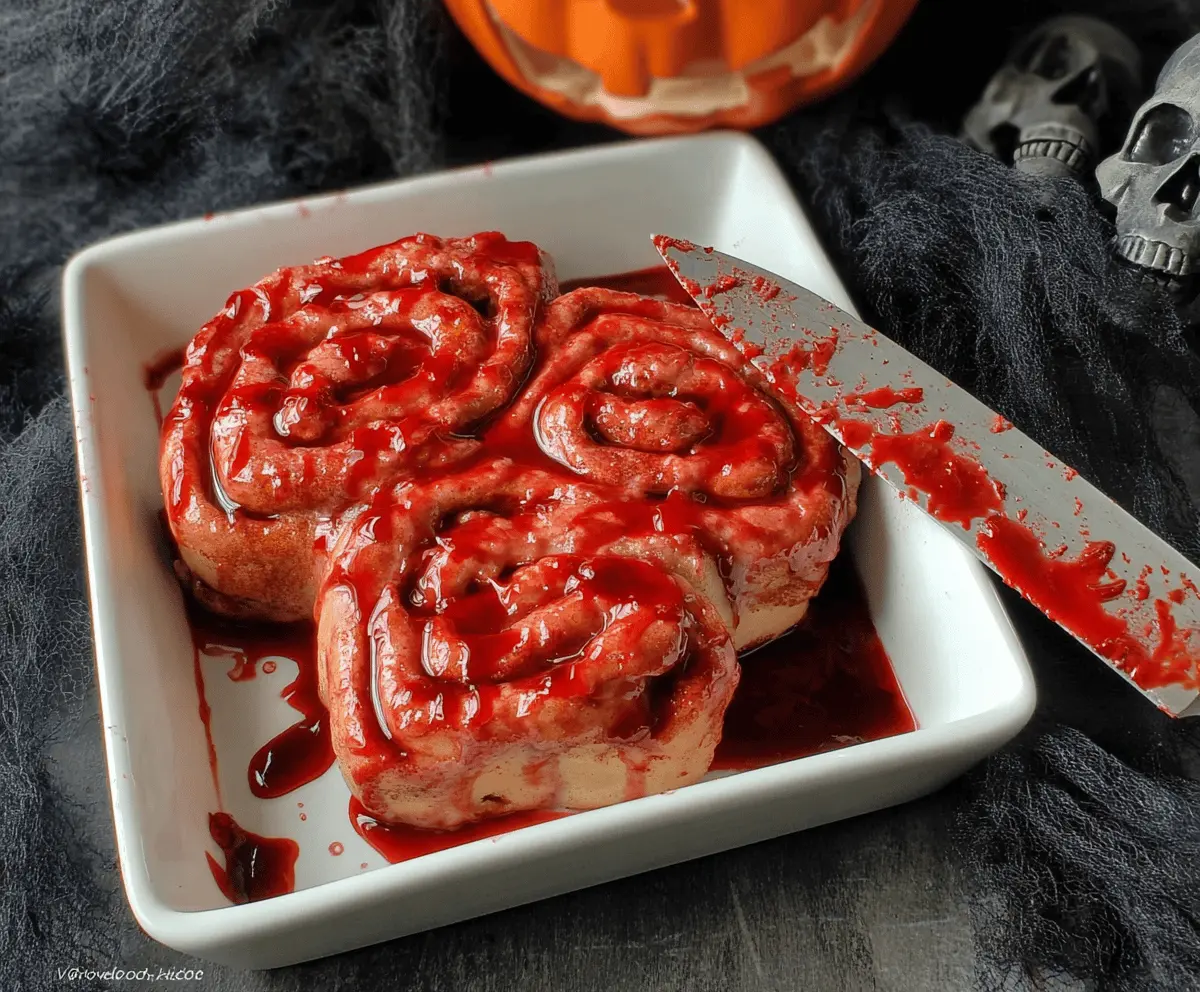 Enjoy your delicious and eerie Halloween Bloody Cinnamon Rolls — spooky, sweet, and perfect for a festive treat!