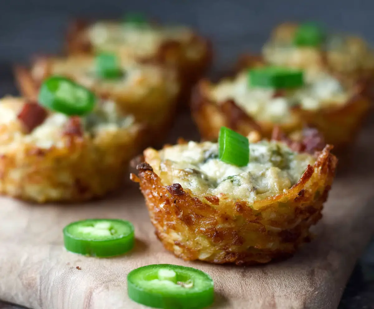 Jalapeno Popper Hash Brown Cups are a tasty treat! They mix crispy hash browns with spicy jalapenos and creamy cheese, making each bite crunchy and flavorful.