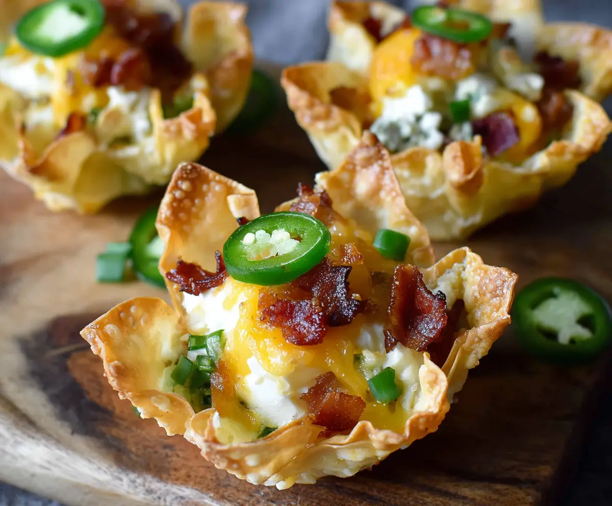 Enjoy the crispy, creamy, and spicy flavors of these Jalapeno Popper Wonton Cups! 🍽️