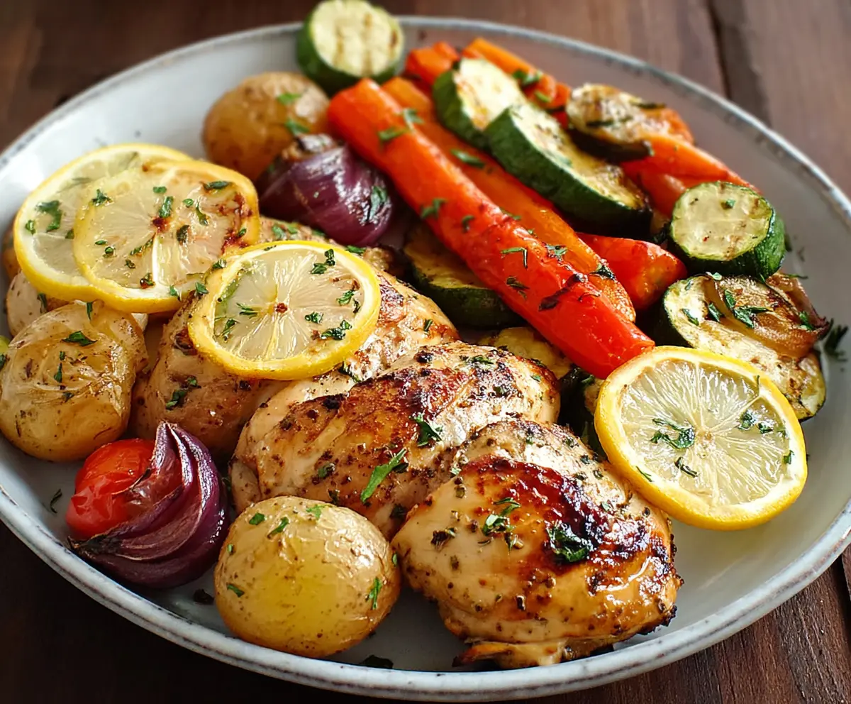 This Lemon Herb Chicken with Roasted Veggies is a bright and tasty dish! Juicy chicken is seasoned with zesty lemon and fresh herbs, making each bite refreshing.