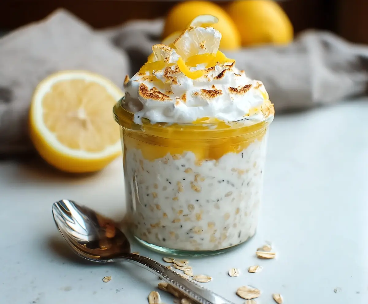 Enjoy the bright, creamy flavors that make these overnight oats taste like a delightful lemon meringue pie—perfect for a fun and nutritious breakfast!