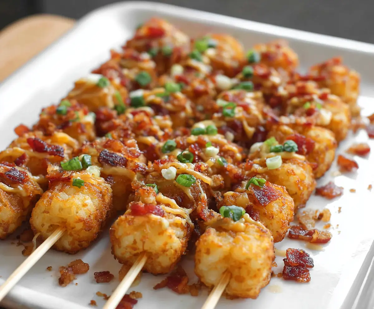 These Loaded Tater Tot Skewers are the fun twist you’ve been looking for! Packed with crispy tater tots, cheese, bacon, and your favorite toppings, they are a tasty treat for any occasion.