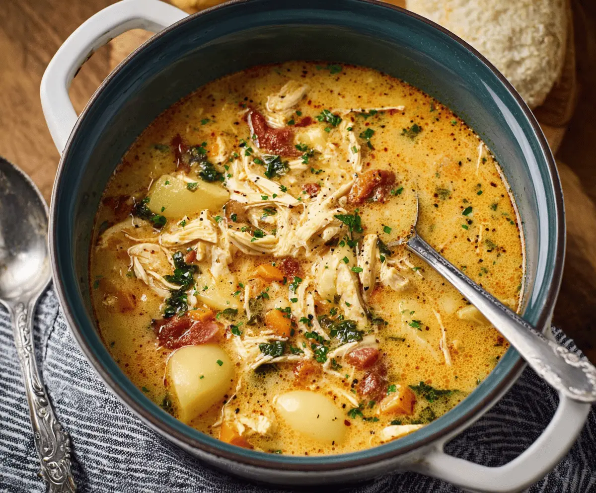 Creamy Marry Me Chicken Soup with tender chicken, fresh herbs, and vegetables in a comforting broth