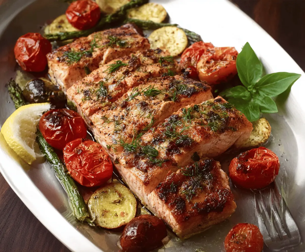 Enjoy your flavorful and healthy Mediterranean Salmon Bake!