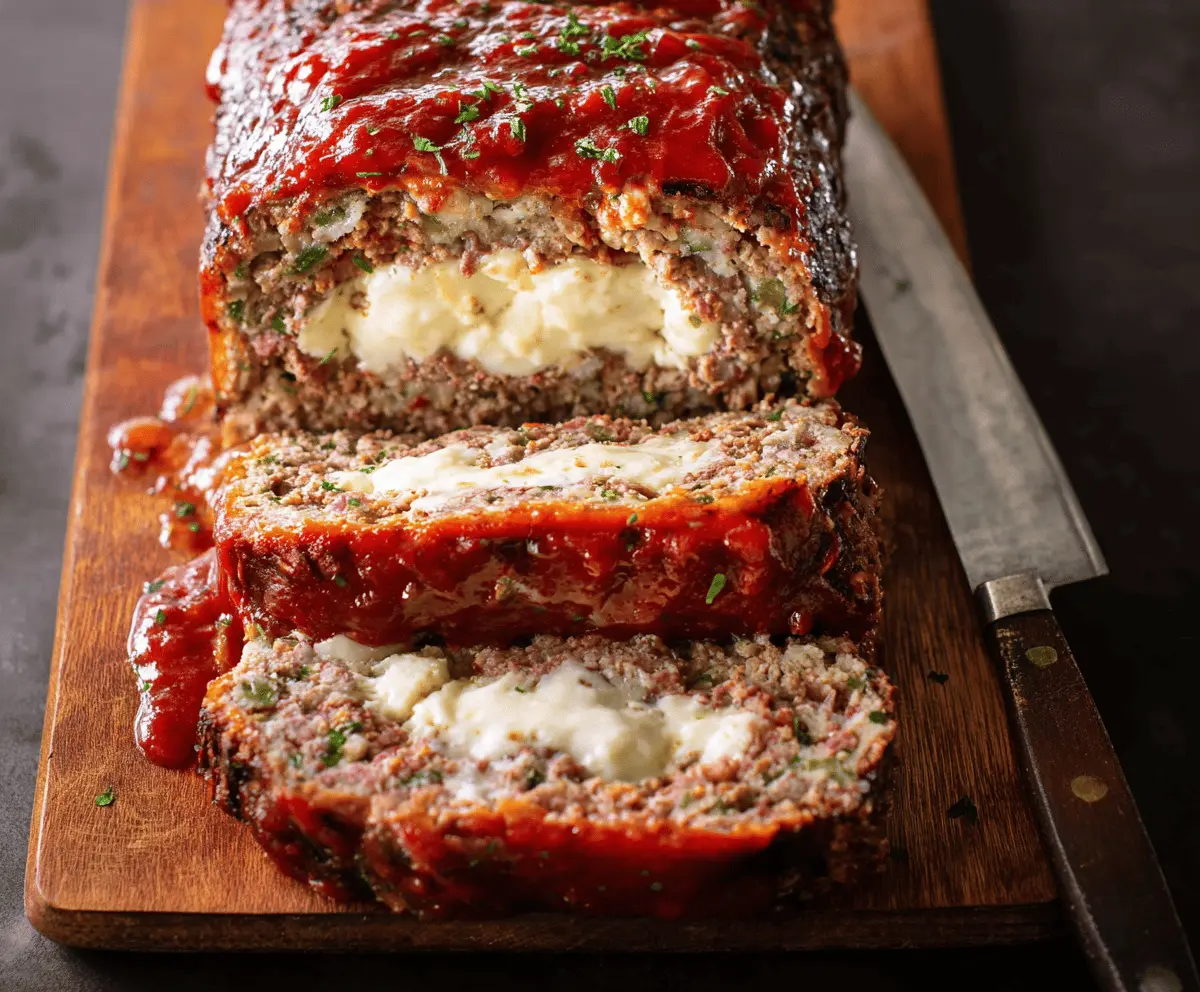 This Mozzarella-Stuffed Meatloaf is a delicious twist on a classic dish! Juicy meat with melted mozzarella inside makes every slice a cheesy delight.