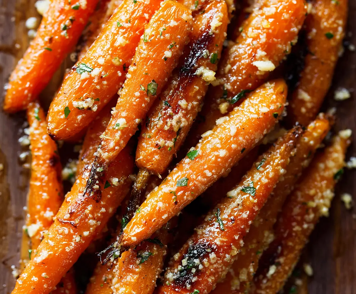 Once the carrots are done roasting, take them out of the oven. While they’re still hot, immediately sprinkle the grated Parmesan cheese over them. Gently toss the carrots to coat them in the melted cheese.