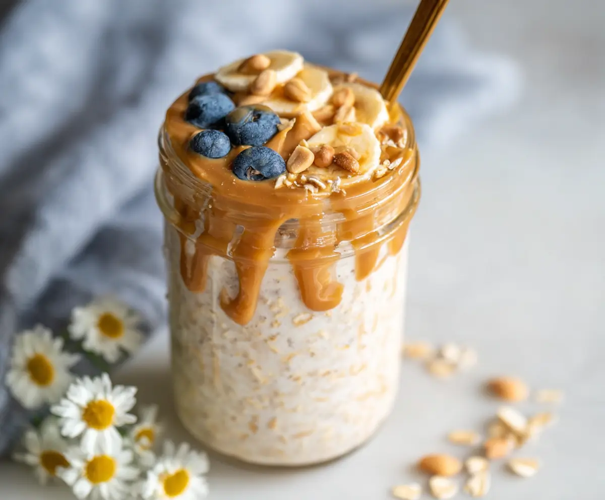Peanut Butter Overnight Oats are a quick and yummy way to start your day! Just mix oats, milk, and peanut butter, then let it sit overnight. Come morning, it’s ready to eat!