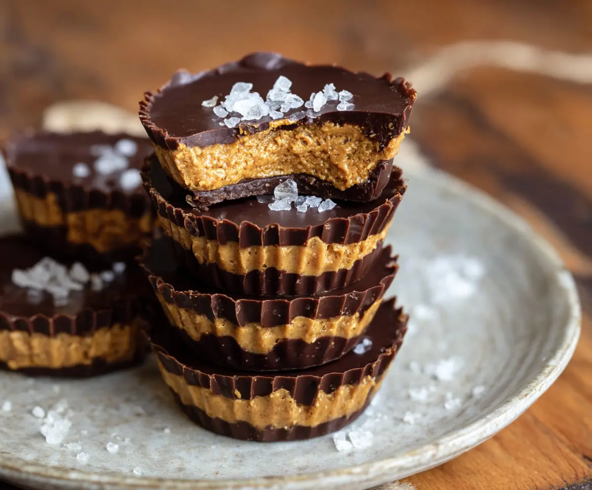 Delicious homemade peanut butter protein cups with chocolate coating and creamy texture