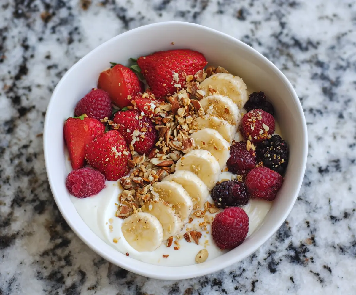 Greek Yogurt: This is the base of your bowl. Greek yogurt is thicker and creamier, great for protein. If you’re looking for a dairy-free option, try coconut yogurt or almond yogurt for a similar texture.