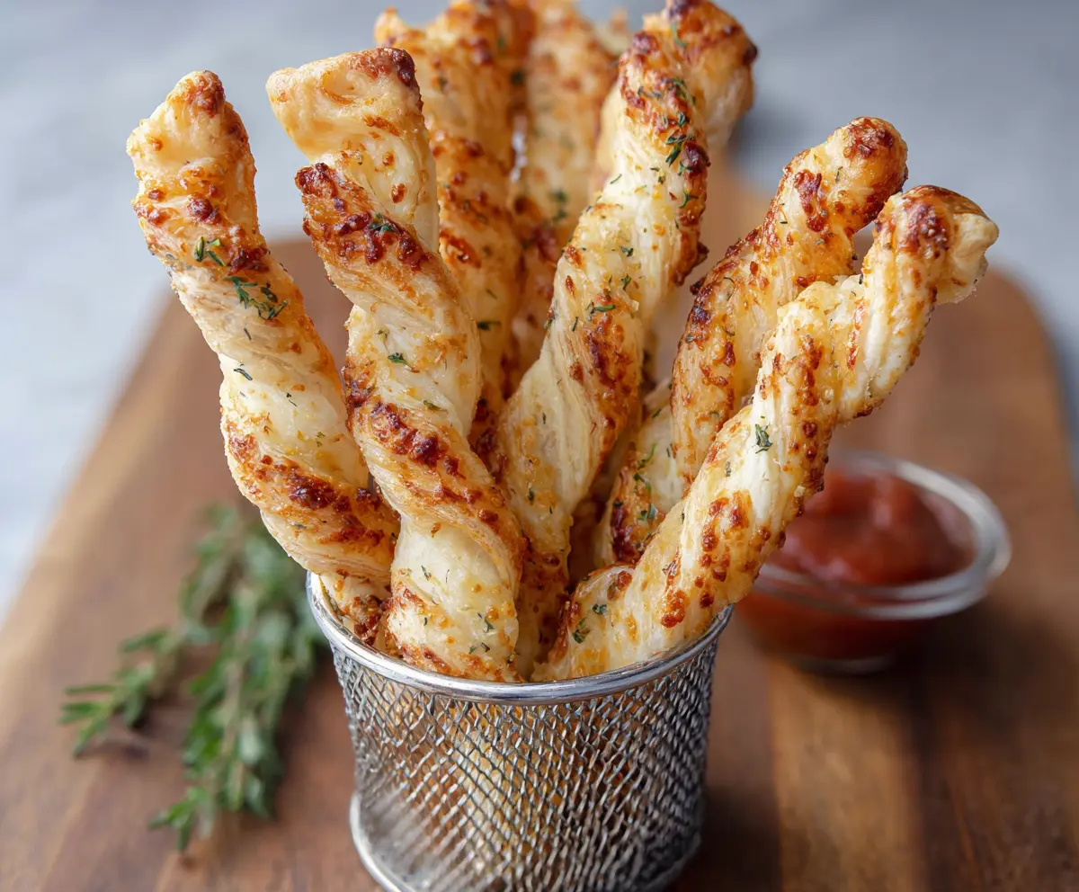 Golden Puff Pastry Parmesan Twists served as a crunchy snack or appetizer.
