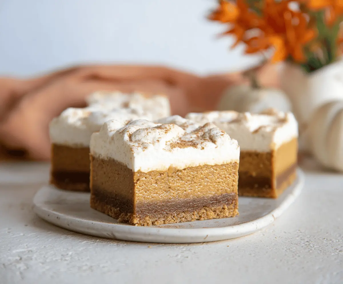 Topped with a generous dollop of whipped cream and a sprinkle of cinnamon or pumpkin pie spice, these bars are ready to be enjoyed!