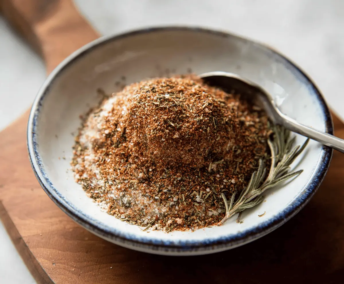 In a small bowl, add kosher salt, black pepper, garlic powder, onion powder, paprika, thyme, rosemary, and sage. If you like a bit of heat, sprinkle in cayenne pepper. Mix everything together until it’s evenly blended.