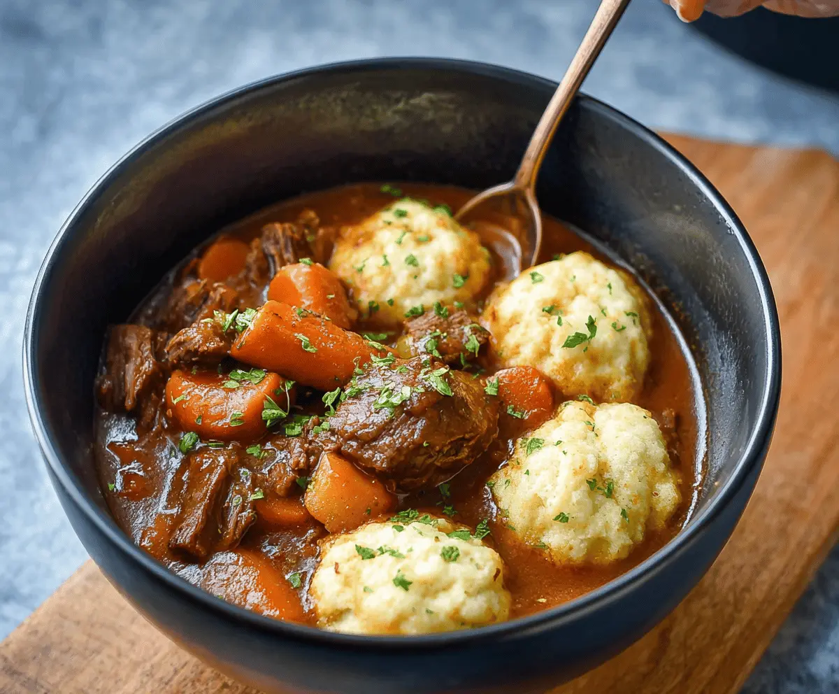 This recipe delivers tender beef, hearty veggies, a rich and flavorful broth, and delightful dumplings that soak up all those delicious juices. It’s an ideal choice for a cozy meal!