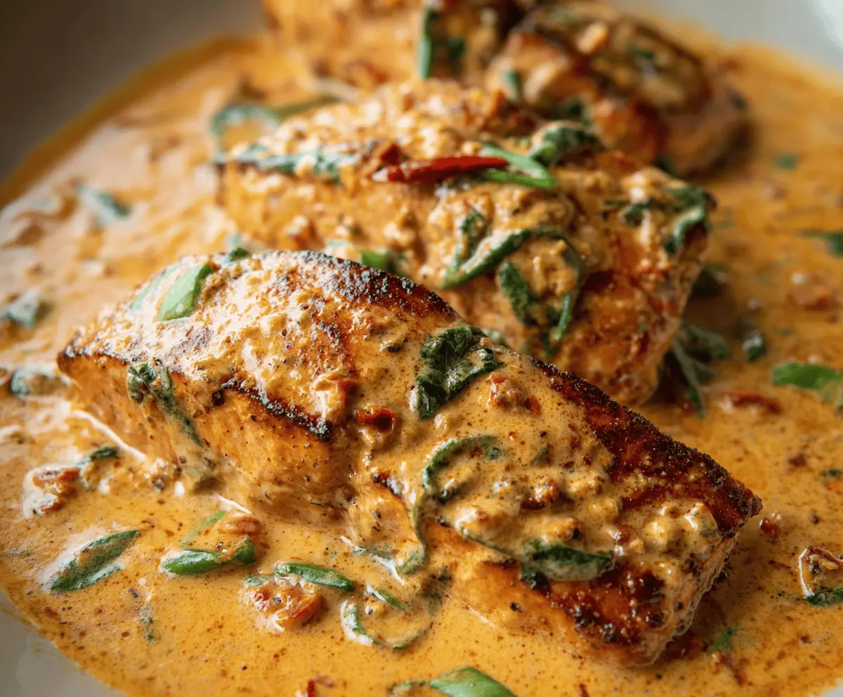 This Spicy Creamy Cajun Salmon is a tasty treat that brings the heat! With a rich and creamy sauce full of Cajun spices, it’s perfect for those who love bold flavors.