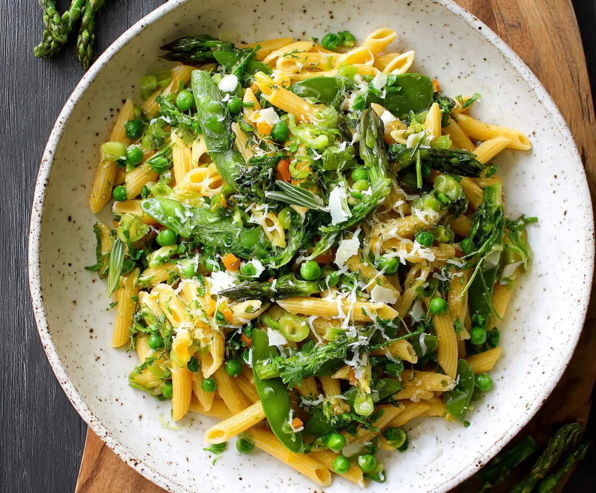 Serve your vibrant Spring Vegetable Pasta warm, garnished with extra Parmesan and a drizzle of olive oil if you like. It’s a fresh, delightful dish perfect for any springtime meal!