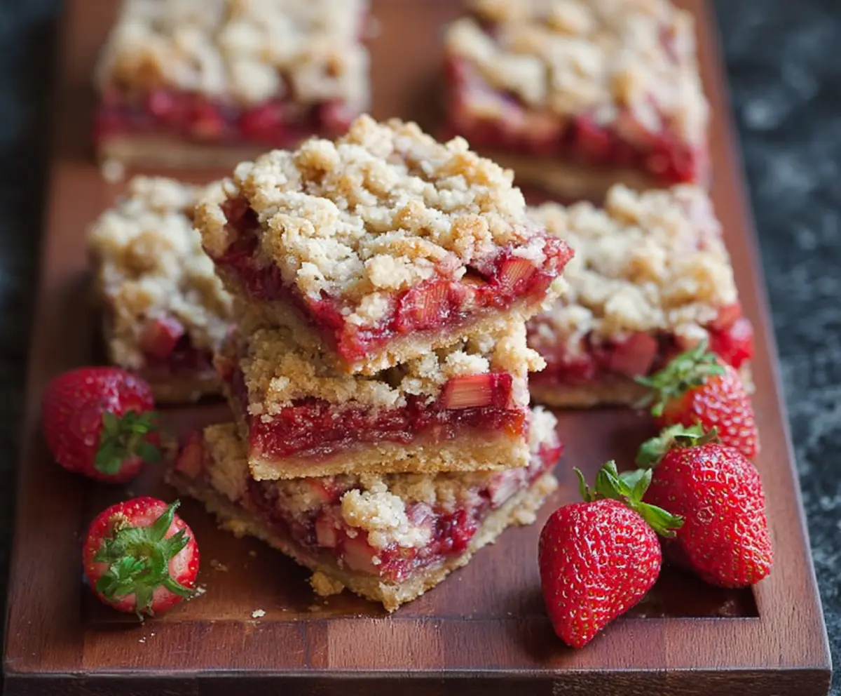 These Strawberry Rhubarb Crumble Bars are the perfect treat for fruit lovers! With sweet strawberries and tart rhubarb layered between a buttery crumble, every bite is a tasty joy.