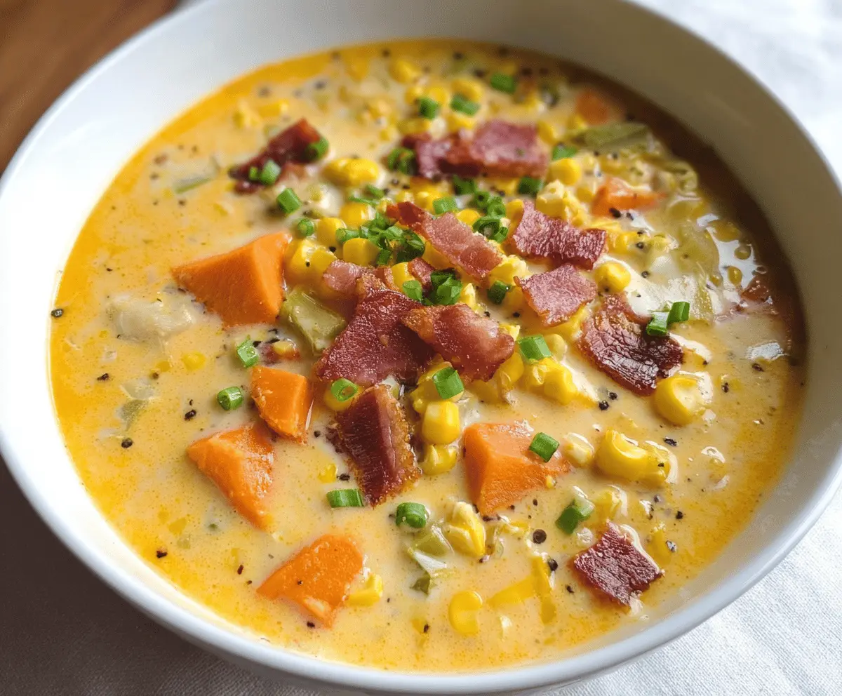 Enjoy your hearty and comforting Sweet Potato Corn Chowder! Perfect for any day!