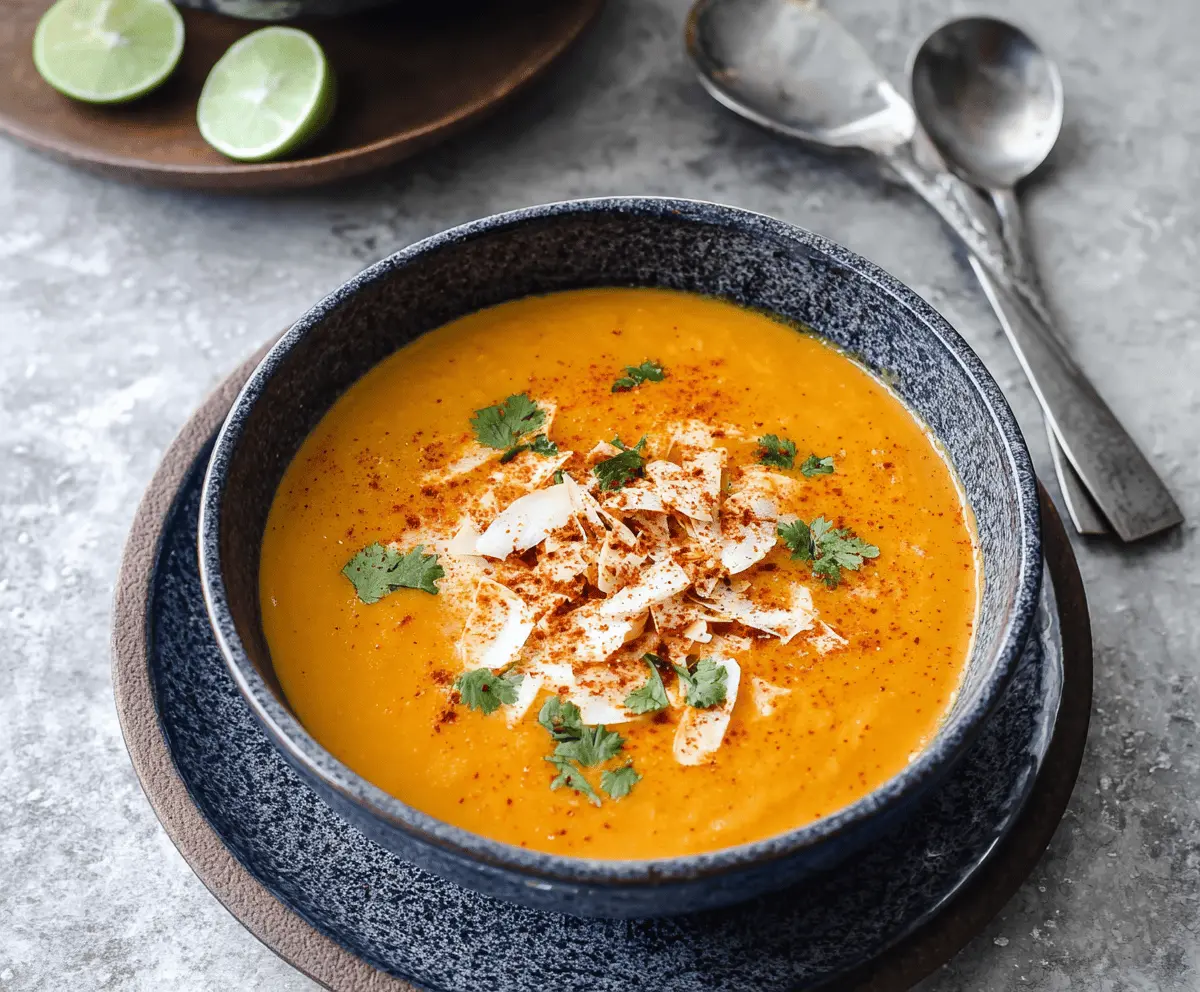 Enjoy this velvety, comforting sweet potato soup with the tropical touch of coconut milk! Perfect for a cozy meal! 😊