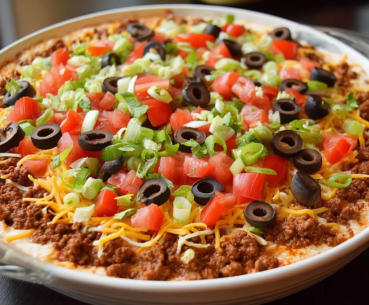This Taco Dip with Ground Beef is a tasty treat that’s perfect for parties! With layers of creamy goodness, seasoned beef, and your favorite toppings, it’s sure to be a hit!
